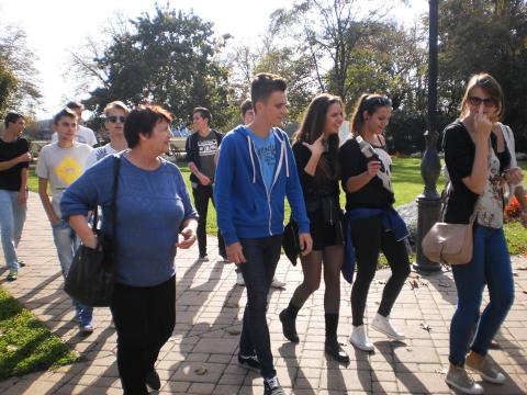 A program a város központjában folytatódott. A városi könyvtárban, önkéntes diákok kalauzolásával, a vendégek megnézték az Anna Frank- kiállítást, majd a múzeumban megtekintették a Szolnok polgári múltját bemutató kiállítást és az őskori kiállítást, ahol meghallgattak egy, a Szolnok váráról szóló előadást is. A csepergős idő ellenére városnéző sétára is sor került, mely et aszolnoki diákok vezettek, és melyhez egy feladványokat tartalmazó füzet nyújtott segítséget. A séta után mindenkinek jól esett a vacsora. Az este a kivilágított város megtekintésével és közös bowlingozással telt.