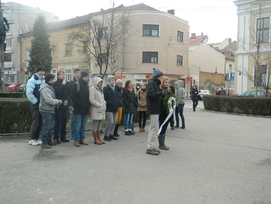 Iskolánk névadójára emlékeztünk halálának évfordulóján a tizenkettedikesekkel, akik rövid időre a XX. század elejének kávéházi világába képzelhették magukat ezen a rendhagyó irodalomórán. Miután a VI –VIII. osztályos diákok rövid jelenetben mutatták be a Holnap antológia megszületésének történetét, a „kávéházi” asztaloknál ülők a holnaposok verseiből olvastak fel, miközben a századelő hangulatát a régi Váradról készült képek teremtették meg. A megemlékezést Ady Endre iskolai és köztéri mellszobrának, illetve iskolánk falát díszítő emléktáblájának megkoszorúzása zárta.